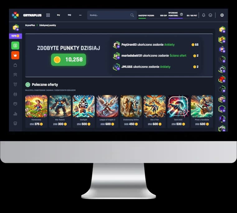 Wiele razy wspominaliśmy o punktach - czym one są? Punkty to nasza waluta. Wykonując zadania, zyskujesz je, a następnie możesz wymienić na nagrody. Przy każdym zadaniu wyraźnie zaznaczyliśmy ilość punktów do zdobycia. Dzięki temu możesz wybrać takie darmowe gry z nagrodami, które sprawią, że zyskasz pożądaną ilość punktów.